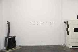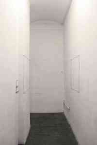 Auch die Arbeit Verortung von Sebastian Winkler erfordert eine Anpassung des Betrachters: Der fragile Drahtquader verhindert das Durchqueren des Raumes, in dem er installiert ist und wirkt sich somit verändernd auf ihn aus. Gleichzeitig bestimmt der bestehende Ort die Maße des Quaders und stellt den Bezugspunkt für den neu entstandenen Raum dar. Die Linien, als raumdefinierendes Element, treten auch in den Arbeiten Randbebauung # 3 und Randbebauung # 7 auf. Als Grundlage der Collagen verwendete Sebastian Winkler ein Abfallprodukt, wie es bei Tiefdruckverfahren entstehen kann. Die Überreste der Farbe bilden ein Nebeneinander und Übereinander undefinierbarer, zufälliger Formen und Strukturen, in welchem die akkuraten Linien einen ungewissen, nicht lokalisierbaren Ort abstecken. Erst durch die hinzugefügten Architekturelemente, verkleinerte Ausschnitte aus einem Magazin für Architektur- Projekte, wird eine Verortung möglich. Wie die In-Situ-Arbeit, sind auch Randbebauung #3 und Randbebauung #7 eine Auseinandersetzung mit der persönlichen Orientierung im Raum.