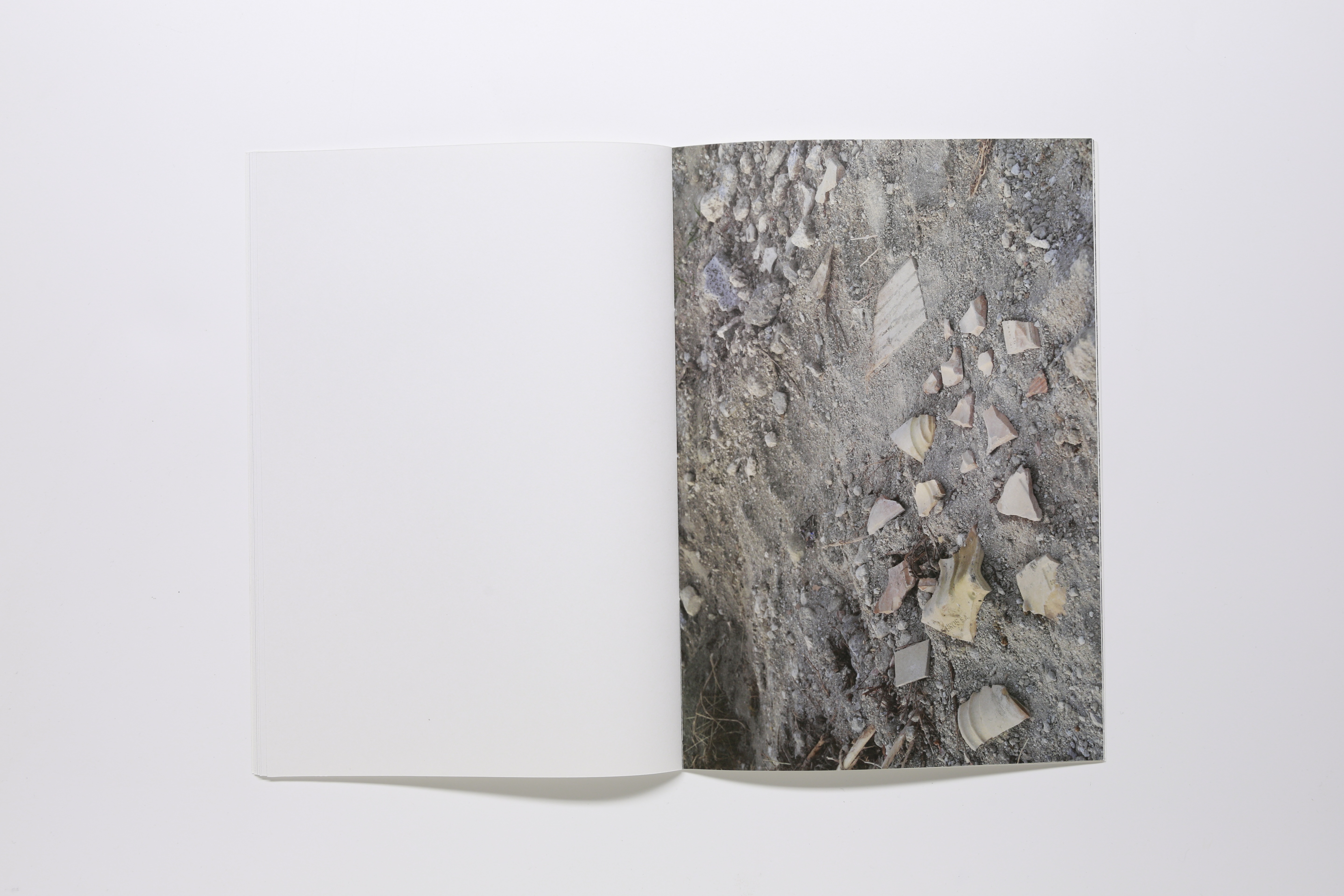 Die Übersetzung der fotografischen Aufnahmen dieser ortsspezifischen Installationen in die vorliegende Edition kommt der Praxis des Anordnens der Fundstücke in einem Ausstellungsraum gleich. Während jedoch die räumlichen Kompositionen ihre Umgebung unmittelbar miteinbeziehen, wird diese in der Arbeit Topoi visuell ausgespart. In die Narration einbezogen wird der umgebende Ort jedoch in beiden Fällen – einmal als vorhandener, einmal als abwesender Ort.
