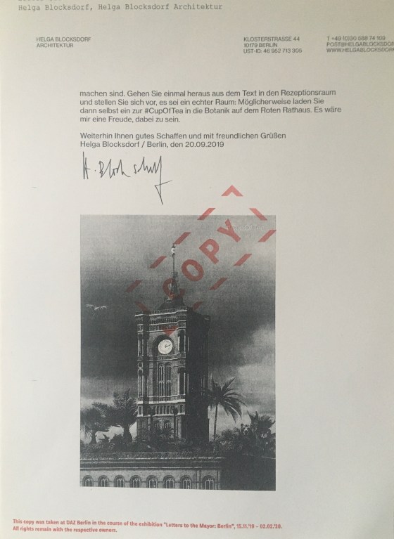 Im Deustchen Architektur Zentrum war bis zum 2.2.2020 die Ausstellung „Letters to the Mayor: Berlin“ zu sehen. Ferial Nadja Karrasch … Mehr