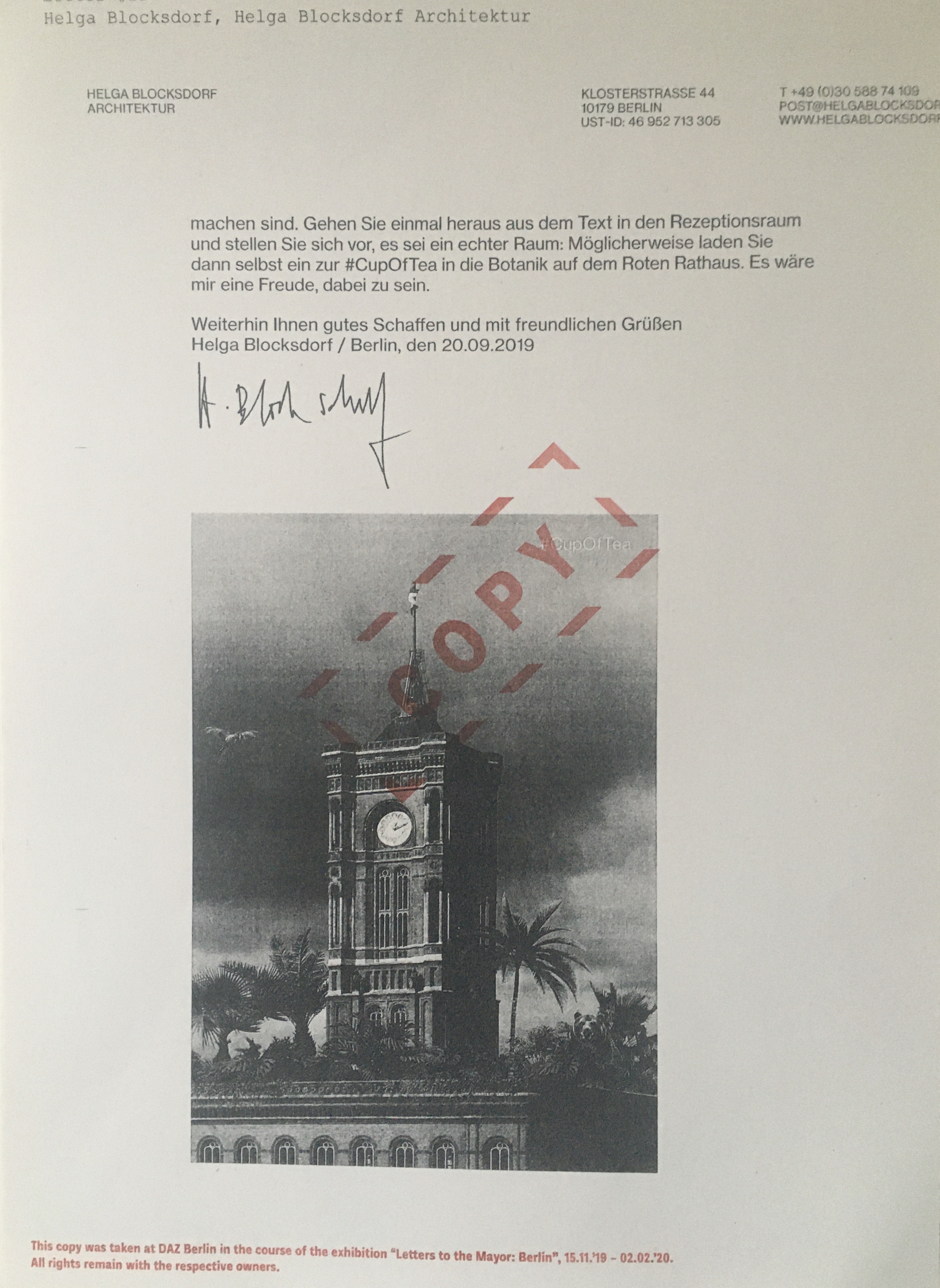 Im Deustchen Architektur Zentrum war bis zum 2.2.2020 die Ausstellung „Letters to the Mayor: Berlin“ zu sehen. Ferial Nadja Karrasch hat sich durch die Briefe gelesen und war bei einer Veranstaltung mit Katrin Lompscher, Senatorin für Stadtentwicklung und Wohnen, dabei.