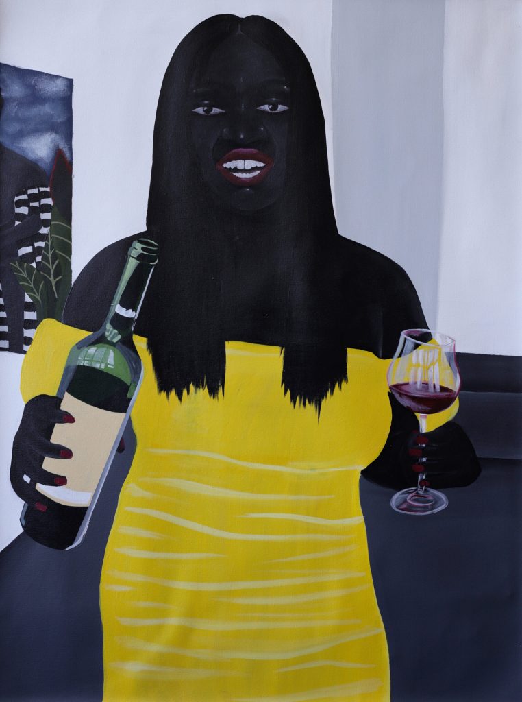 Zandile Tshabalala, A Glass of, 2021, Acryl auf Leinwand, 120×90 cm, , Foto: Courtesy Nagel Draxler
