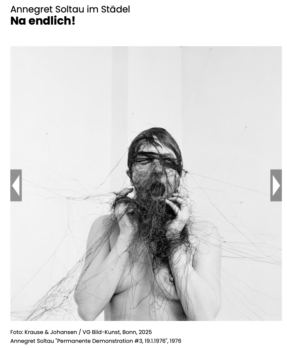 Soltaus Kompromisslosigkeit bei der Auseinandersetzung mit den Themenkomplexen Mutterschaft, Identität und Körperpolitik sowie ihr experimenteller Umgang mit der Fotografie machen sie zu einer wichtigen Pionierin der feministisch inszenierten Fotografie und der Body Art. Und so hat man beim Gang durch die Retrospektive in Frankfurt einen ständigen Gedanken im Kopf: Na endlich!