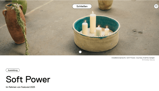 Text für Monopol Magazin (11.9.2025) Zur Art Week zeigt die Berliner Galeristin Anahita Sadighi die Ausstellung „Soft Power“. Die Installation … Mehr