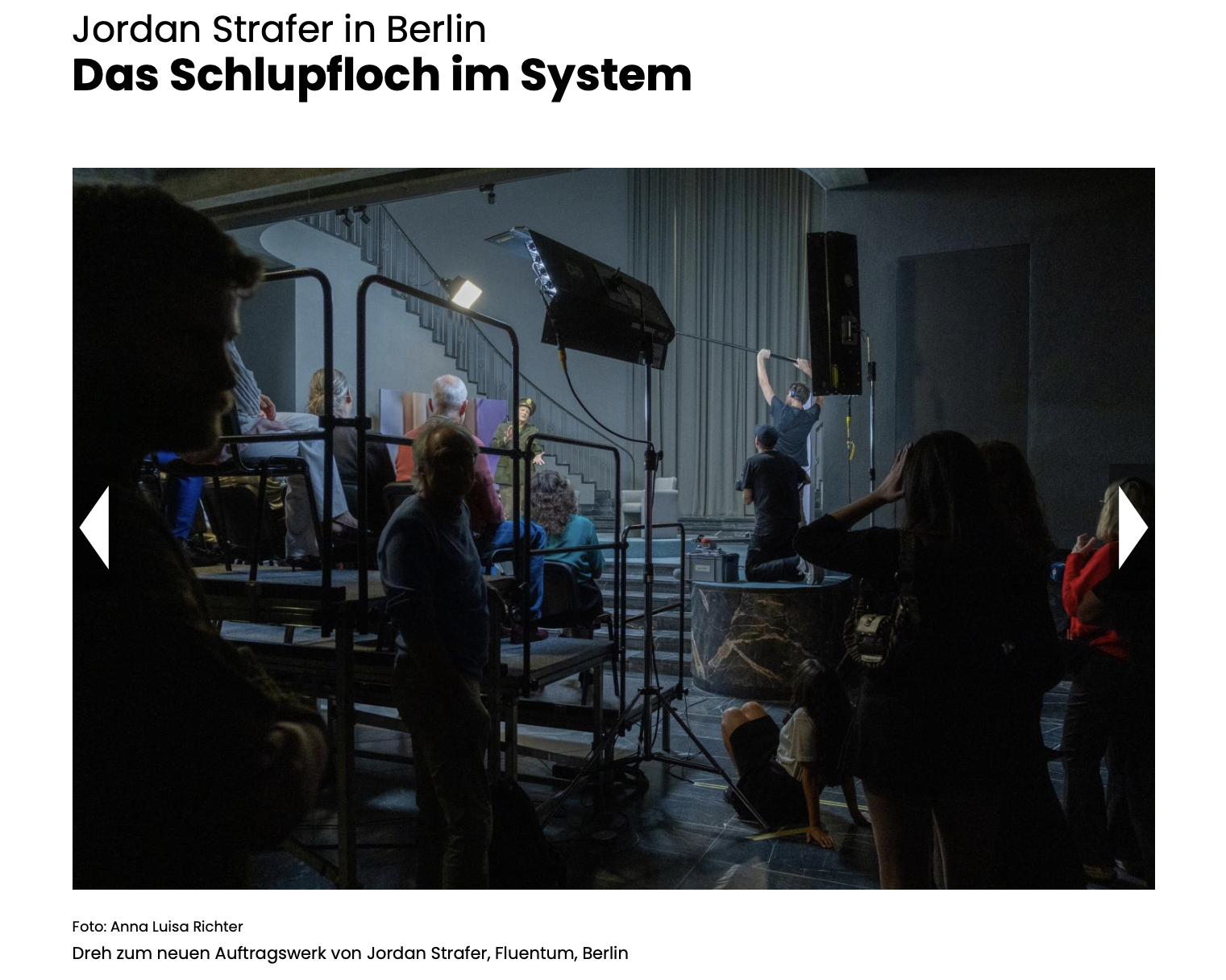 Diese Botschaft steht im Zentrum der Filmreihe „Loophole“ der US-amerikanischen Künstlerin Jordan Strafer, deren erste institutionelle Einzelausstellung in Deutschland gerade bei Fluentum in Berlin-Dahlem zu sehen ist. Anhand zweier Video-Arbeiten sowie einem Werk in progress veranschaulicht die Schau „Dissonance“, wie Strafer Mechanismen von Macht und Repräsentation offenlegt, die soziale Realitäten formen und die öffentliche Meinung beeinflussen.